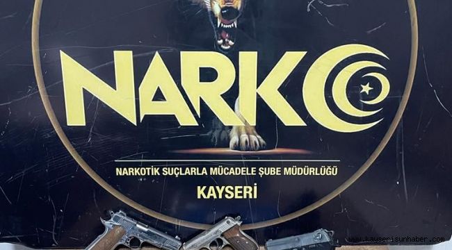 Edinilen bilgiye göre, Kayseri İl Emniyet Müdürlüğü Narkotik Suçlarla Mücadele Şube Müdürlüğü ekipleri, Talas ilçesine bağlı Mevlana Mahallesi'nde bulunan bir adreste uyuşturucu madde ticareti yapıldığı bilgisine ulaştı. Evi tespit ederek operasyon düzenleyen ekipler arama yaptı. Yapılan aramada, 13.60 gram metamfetamin, 1 adet uyuşturucu paketlemek için rulo folyo ve 3 adet ruhsatsız tabanca ele geçirildi.