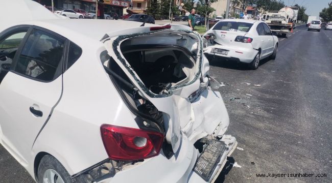 Kayseri'nin Kocasinan ilçesinde yakıt tankeri ve 3 otomobilin karıştığı zincirleme kazasında 1 kişi yaralandı.