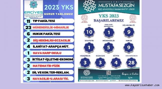 Kayseri Anadolu İmam Hatip Lisesinden, 3 öğrenci tıp, 1 öğrenci diş hekimliği, 5 öğrenci mühendislik, 5 öğrenci hukuk ve 24 öğrencinin de farklı bölümlere yerleştiği belirtildi.