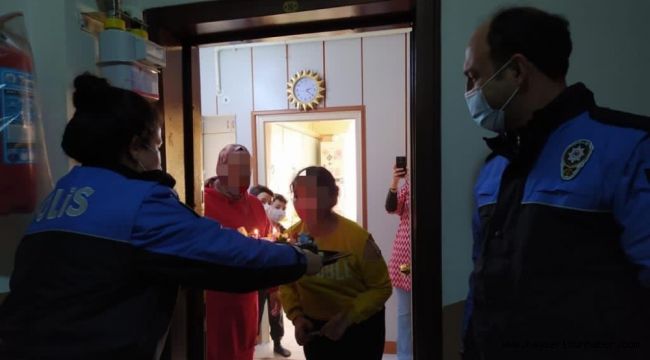 Kayseri'de polis ekipleri, down sendromlu Neriman Canpolat'a sürpriz yaparak doğum gününü evlerinin önünde kesikleri pastayla kutladı.