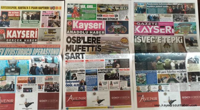 Kayseri'de günlük olarak yayın yapan 3 gazete, Basın İlan Kurumu aracılığıyla depremzedelere yardım yapmak için bağışta bulundu.Türkiye genelinde, 10 ilde büyük bir yıkıma neden...
