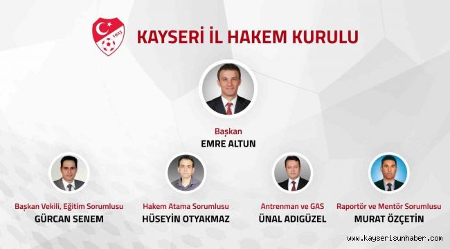 Kayseri İl Hakem Kurulu Başkanı ve kurul üyeleri atandı. Ahmet Cengiz Duman'ın yerine başkanlığa Emre Altun atanırken, kurul üyeleri ise değişti.