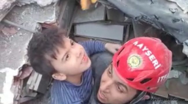 Deprem bölgesi Kahramanmaraş'ta görev yapan Kayseri Büyükşehir Belediyesi İtfaiye Daire Başkanlığı ekipleri, enkaz altında kalan 6 yaşındaki erkek çocuğuna sağ salim ulaştı.