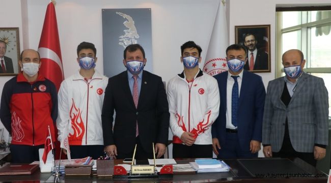 Mert Efe Kılıçer, Hasan Bulut, Antrenör Mehmet Bilgin ve Kulüp Başkanı Yusuf Fidan Avrupa Cimnastik şampiyona sonrasında İl Müdürü Ali İhsan Kabakcı'yı, ziyaret ettiler.
