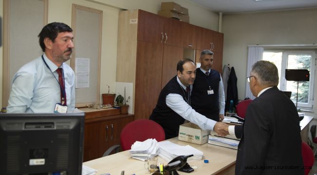 Büyükşehir Belediye Başkanı Dr. Memduh Büyükkılıç, KASKİ Genel Müdürlüğü’nde Genel Müdür Doç. Dr. Özgür Özdemir tarafından karşılandı. Yatırım toplantısı öncesi KASKİ birimlerini gezen Başkan Memduh Büyükkılıç, personelle ve işlemlerini yaptırmak üzere gelen vatandaşlarla selamlaştı. Tüm birimleri gezen Başkan Büyükkılıç, çalışanlara kolaylıklar diledi.