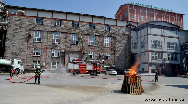 Kayseri Şeker İtfaiye Birimi Personeli daha sonra yakılan ateşe yüksekten ve yerden müdahale ederek, olası bir yangında nasıl hareket edilmesi gerektiğini gösterdiler.
