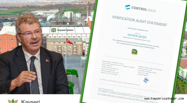 Daha önce bünyesindeki 3 fabrikada, Koronavirüs salgınına karşı gerekli şartları başarı ile sağlayarak, Türk Standartları Enstitüsü (TSE) tarafından, 'TSE Covid-19 Güvenli Üretim Belgesi'ne sahip olan Kayseri Şeker, almaya hak kazandığı bu önemli belge ile de hem sürdürülebilir tarım uygulamalarında, hem de güvenli üretim aşamalarında, ne kadar önemli bir disiplin politikası izlediğini açıkça göstermiş oldu. Ürünlerinde sürdürülebilir üretimi teşvik etmek amacıyla, gıda zincirinde faaliyet gösteren tarım işletmelerinde ve yiyecek-içecek şirketlerinde önemli denetimlerden geçilerek elde edilen bu sertifika, tedarik zincirinde üretimin sürdürülebilirliğinin desteklenmesi, geliştirilmesi, uzun vadeli ekonomik beklentilerin artırılması ile şirketlerin müşterilerdeki sosyal ve çevresel beklentilerini karşılayabilmeleri amacını taşıyor.