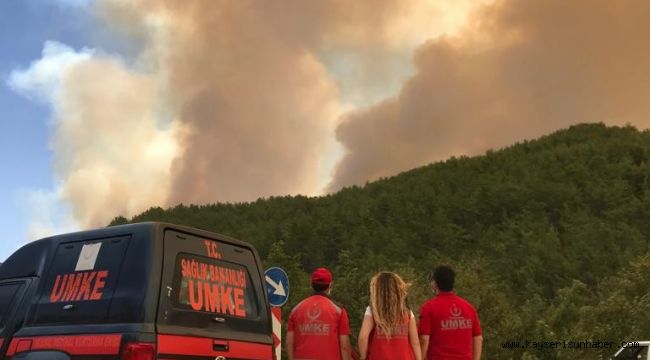 Kayseri'den 8 UMKE gönüllüsü, Sağlık Bakanlığı SAKOM birimi tarafından Antalya'nın Manavgat ilçesindeki orman yangınında görevlendirildi. Yahyalı ilçesine bağlı Kapuzbaşı ve Ulupınar Mahallelerinin içinde bulunan Aladağlar'da 3 gün boyunca etkili olan orman yangınında büyük mücadele örneği sergileyen UMKE ekipleri, Manavgat'taki yangında dumandan etkilenen ekiplere ve vatandaşlara medikal müdahale ve destek için büyük çaba sarf ediyor. UMKE 11. Bölgeden 8 gönüllü ve 2 UMKE aracı, Nevşehir'den 4 gönüllü ve 1 UMKE Aracı, Niğde'den 4 gönüllü ve UMKE aracı olmak üzere toplamda 16 UMKE gönüllüsü ile 4 UMKE aracı yangının devam ettiği ilçede görevlendirildi.