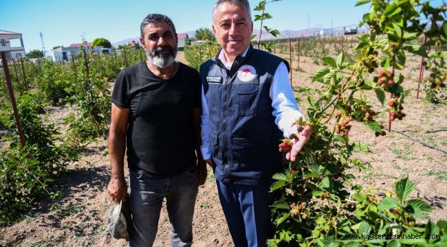 İl Müdürü Mustafa Şahin, Kocasinan ilçesine bağlı Çevril Mahallesi'nde, verim yaşına gelmiş olan ahududu ve böğürtlen bahçelerini konu uzmanı teknik personellerle birlikte ziyaret ederek incelemelerde bulundu. Burada açıklamalarda bulunan Şahin, "İlimizde, tüketiciye alternatif ürün sunmak amacıyla yetiştiriciliği yapılan ahududu ve böğürtlen üretiminde olumlu sonuçlar alınmakta ve üreticimizin pazar sorunu bulunmamaktadır. Ahududu ve böğürtlen yetiştiriciliği çok masraflı olmayan, kar marjı yüksek ürünler sınıfına girmektedir. İlimizde modern teknikler kullanılarak geniş alanlarda yapılacak dikimler ile ticari getirisinin yüksek olacağına inanmaktayız. Ahududu ve böğürtlenin taze olarak saklanmasının zor oluşundan dolayı taze tüketimi oldukça sınırlıdır. Meyvelerin % 90'ından fazlası meyve suyu, konserve, reçel, marmelat, jöle, şeker, pasta, dondurma, mısır gevrekleri, kurutma endüstrileri ile meyveli yoğurt, meyve çayı üreten işletmeler ve ilaç gibi birçok sanayi kolunda işlenmiş mamul haline getirilmektedir. Son yıllarda doğal bitki çaylarının tüketiciler tarafından aranır hale gelmesi, bu meyvelerin bu amaçla da kullanımını ön plana çıkarmaktadır. Ahududu ve böğürtlen, sahip olduğu vitaminler ve mineral maddeler nedeniyle insan sağlığı açısından da çok büyük bir öneme sahiptir" dedi.