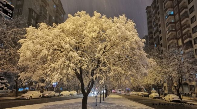 Kayseri'ye gün boyu etkili olan şiddetli rüzgarın ardından başlayan kar yağışı kenti beyaza bürüdü.