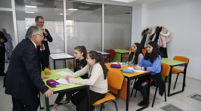 Büyükşehir Belediye Başkanı Dr. Memduh Büyükkılıç, Beyazşehir Sosyal Yaşam Merkezi’nde incelemelerde bulundu. Sosyal Yaşam Merkezi’nde Genç KAYMEK birimi tarafından açılan kursları ziyaret eden Başkan Memduh Büyükkılıç, sınıfları ziyaret ederek öğrencilerle sohbet etti. Öğrencilerin taleplerini alan Başkan Büyükkılıç, teneffüslerini oyun odalarında geçiren öğrencilerle de bir araya geldi.