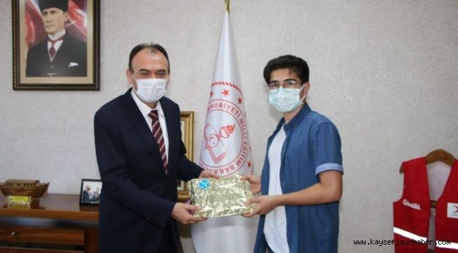 Erciyes Ortaokulu öğrencisi Erşad Tanrıkulu, LGS'de 500 tam puan alarak dereceye girdi. İl Milli Eğitim Müdürü Bilal Yılmaz Çandıroğlu'nun makamında ağırlayarak ödüllendirdiği Tanrıkulu, ilk tercihi olan Galatasaray Üniversitesi Galatasaray Lisesi'ne yerleşti.