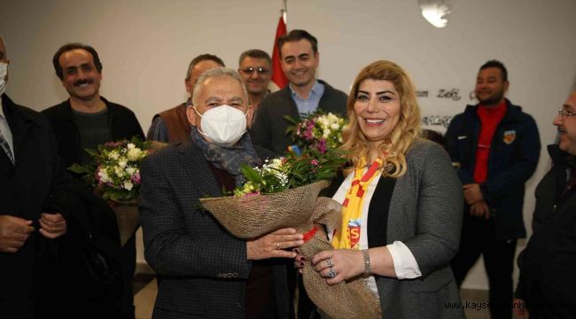 Kayseri Büyükşehir Belediye Başkanı Dr. Memduh Büyükkılıç'a, Yukatel Kayserispor-Konyaspor maçı öncesi sarı kırmızılı takımın başkanı Berna Gözbaşı tarafından 14 Mart Tıp Bayramı dolayısıyla çiçek takdim edildi. Gözbaşı, Başkan Büyükkılıç'ın Tıp Bayramı'nı kutladı.