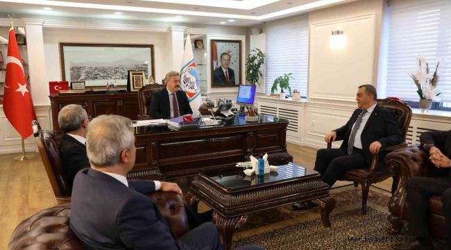 Kayseri Sanayi Odası (KAYSO) Başkanı Mehmet Büyüksimitçi Meclis Başkanı Abidin Özkaya, Mimarsinan OSB Başkanı Lütfi Çarşıbaşı, İncesu OSB Başkanı İrfan Püsküllü ve oda yönetim kurulu üyeleri, Melikgazi Belediye Başkanı Mustafa Palancıoğlu'nu makamında ziyaret etti.