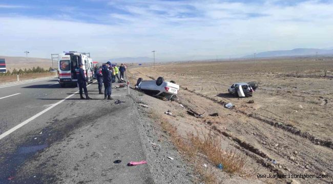 Kayseri'nin Tomarza ilçesinde çarpışan otomobiller tarlaya uçarken, meydana gelen kazada 5 kişi yaralandı.