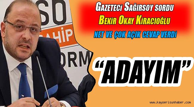 İşte tüm konuları görüştüğümüz Bekir Okay Kiracıoğlu ile yaptığımız telefon görüşmesinin sonunda, içimdeki soruyu sormadan edemedim, aynısını yine dönemin Büyükşehir Belediye Başkanı Mustafa Çelik’e sormuştum ve o da Kayseri’de ilk defa “aday olduğunu” hem de adaylık açıklama sürecinden aylar önce bana açıklamıştı. (Tıpkı Memduh Büyükkılıç’ın aday olduğunu yine ilk bana açıkladığı gibi) Şimdi de benzeri bir ilki yaşadım,