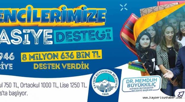 Büyükşehir Belediye Başkanı Dr. Memduh Büyükkılıç, gönül belediyeciliğinin en güzel örnekleri sayılabilecek projeler çerçevesinde 2023-2024 eğitim öğretim yılında Kayseri il sınırları içerisinde ikamet eden ihtiyaç sahibi ailelerin ilkokul öğrencisi için 750 TL, ortaokul öğrencisi için 1.000 TL ve lise öğrencisi için 1250 TL olarak kırtasiye yardımı yapılacağını belirtti. Başvuruların, 7 Ağustos 2023 tarihinde başladığını duyuran Başkan Büyükkılıç, 7 Ağustos ile 8 Eylül 2023 tarihleri arasında Kayseri Büyükşehir Belediyesi'nin internet sitesi www.kayseri.bel.tr adresinde online hizmetler kısmından kırtasiye yardımı başvuru formu üzerinden başvuruların yapılacağını ifade etti.