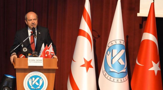 Kayseri Üniversitesi tarafından düzenlenen 'Mavi Vatanda KKTC'nin Rolü' konulu konferansa katılmak için Kayseri'ye gelen KKTC Başbakanı Ersin Tatar, ilk olarak Kayseri Valiliği'ni ziyaret etti. Burada Vali Şehmus Günaydın ve il protokolü tarafından karşılanan Tatar, valilik makamında Vali Günaydın ile görüştü. Vali Günaydın, Başbakan Tatar'ı kentte ağırlamaktan duyduğu memnuniyeti dile getirdi. Basın mensuplarına açıklamalarda bulunan KKTC Başbakanı Ersin Tatar; İdlib'de şehit olan asker ailelerine başsağlığı dileyerek, 'Bahar Kalkanı' harekatının bölge huzuru açısından çok önemli olduğunu vurguladı. Tatar; "Bizlerin esas görevi Doğu Akdeniz'de gelişmeler içerisinde KKTC içerisinde yaşayan Türk halkının esenliğini ve güvenliğini koruyabilmek ve ileriye taşıyabilmek adına Türkiye ile dostluk ve kardeşlik bağlarımızın daha da güçlenmesi adına zaman zaman Türkiye'nin çeşitli yerlerinde gidip konferanslar veriyorum. Bu da beni bahtiyar ediyor. Çok önemli bir bölgede yaşıyoruz ve şuanda çok önemli gelişmeler yaşanmaktadır. İdlib'de şehit düşen Mehmetçiklerimize Allah'tan rahmet diliyorum, Türk ulusunun başı sağ olsun. Bahar Kalkanı Harekatı'nı yakından izliyoruz. Dualarımız Mehmetçikledir, inşallah başarılı olacaklar. Bu bölgedeki huzur, Türkiye'mizin güvenliği bir bakıma bizlerin de selameti bakımından önemlidir. Bu ortamda çok dikkatli olunması gerekmektedir. Çeşitli emperyalist güçler çeşitli oyunlar içerisindedir. Kıbrıs'ta da bu böyledir. Dolayısıyla bundan sonraki süreçte Kıbrıs'taki refah ve esenliğimiz, güvenli bir geleceğimiz için mutlaka Türkiye ile iyi ilişkiler içerisinde ve gelecekteki siyaseti belirlerken Türkiye ile istişare içerisinde olunması gerektiğini paylaşıyoruz. Büyük ulusun evlatları olarak birlik ve beraberlik içerisinde hareket etmemiz ve çeşitli temasların yoğunlaşarak devam etmesi bizleri daha da güçlü kılmaktadır" ifadelerini kullandı. Valilik ziyaretinin ardından Kayseri Büyükşehir Belediyesi'ni ziyaret eden Başbakan Tatar, burada başkan Memduh Büyükkılıç ile görüştü. Ziyaretlerin ardından KKTC Başbakanı Ersin Tatar, Kayseri Üniversitesi tarafından 15 Temmuz Yerleşkesi Konferans Salonu'nda düzenlenen 'Mavi Vatanda KKTC'nin Rolü' konulu konferansa katıldı. Saygı duruşunda bulunulması ve İstiklal Marşı'nın okunmasıyla başlayan konferans, şehitler için Kuranı Kerim tilavetiyle devam etti. Kayseri Üniversitesi Rektörü Prof. Dr. Kurtuluş Karamustafa, Kayseri Büyükşehir Belediye Başkanı Memduh Büyükkılıç ve Vali Şehmus Günaydın'ın açılış konulmalarının ardından Başbakan Tatar'ın konferansına geçildi. Tatar; "Ulusumuzun son 100 yılda yaptığı kahramanlıklar ve özgürlük mücadelesinde vermiş olduğu mücadele hala anılmaktadır. Kuzey Kıbrıs Türk Cumhuriyeti şaka olsun diye kurulmadı. Kuzey Kıbrıs Türk Cumhuriyeti Doğu Akdeniz'de belli ki çok önemli ulusal menfaatlerimiz olduğu için ve 1974'de kahraman Türk askerinin adaya Türkiye Cumhuriyeti'nin garantörlük hakkını kullanarak müdahale ettiğini ve ondan sonra yaşananları hep birlikte gördük. Kuzey Kıbrıs Türk Cumhuriyeti'nin güçlenerek yoluna devam etmesi ulusal çıkarlarımız bakımından fevkalade önemlidir. Türkiye Cumhuriyeti bu bölgede çok önemli bir devlet, Doğu Akdeniz'e en uzun sahil şeridiyle bu bölgede söz sahibi olma ve Rum-Yunan ikilisinin tek taraflı yapmakta olduğu bir takım girişimlere yapılan çalışmalarla 'dur' demek ve haliyle Kuzey Kıbrıs Türk Cumhuriyeti ile yaptığı anlaşmalar ve bir takım faaliyetlerle Doğu Akdeniz'deki zenginliklerin paylaşımında artık bizler de söz sahibi olmak durumundayız" dedi.