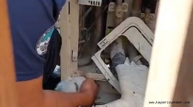 Kayseri Büyükşehir Belediyesi İtfaiye Daire Başkanlığı ekipleri, tarihi Kayseri Kalesi'nde klima içerisinde sıkışarak mahsur kalan yavru kediyi, başarılı bir çalışma ile kurtardı.