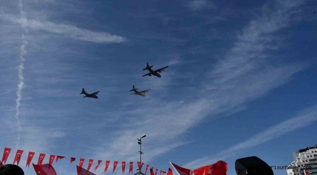 Cumhuriyetin kuruluşunun 100. yıldönümü çerçevesinde Kayseri'de düzenlenen törenlerde 'Koca Yusuf' olarak bilinen A400M uçakları vatandaşları selamladı.