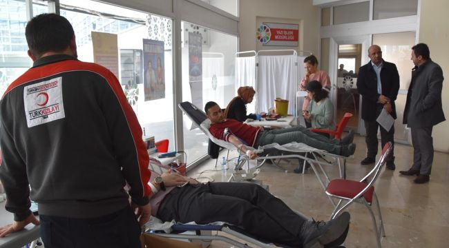 Belediye hizmet binasında gerçekleşen kan bağışı kampanyasına belediye çalışanları yoğun ilgi gösterdi. Genel sağlık kontrolünden geçirildikten sonra kan vermeye elverişli olan belediye çalışanları kan bağışında bulundu.