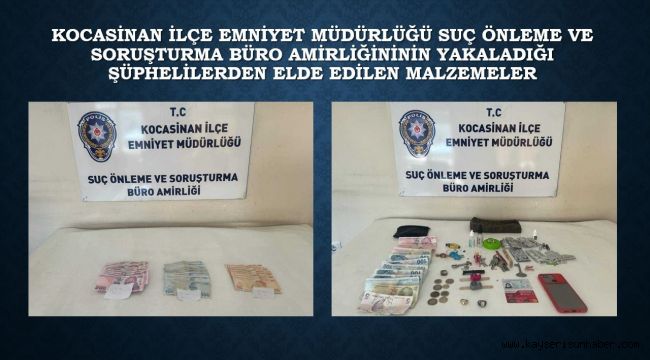Kocasinan İlçe Emniyet Müdürlüğü ekipleri tarafından 10-16 Temmuz tarihleri arasında yapılan çalışmalarda 12 bin 320 şahıs ve 5 bin 776 araç kaydı sorgulanarak, 3 çalıntı oto, 3 yakalama hacizli araca işlem yapıldı. Çalışmalarda 28 faili meçhul olay aydınlatıldı, 23 faili firar şahıs yakalandı.13 şahıs çeşitli suçlardan adli makamlara sevk edildi, 3 şahıs adli makamlarca tutuklandı. 27 aranan şahıs yakalandı, 27 bakaya işlemi yapıldı, 5 kayıp şahıs bulundu. 6 faili meçhul hırsızlık olayı aydınlatılarak, 4 hırsızlık şüphelisi yakalanıp, 2 şüpheli tutuklandı. 24 şahsa Kabahatler Kanunu'na muhalefet etmekten toplam 50 bin 568 TL idari işlem yapıldı.