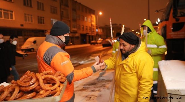 Kocasinan Belediye Başkanı Ahmet Çolakbayrakdar, gece boyunca Kocasinan'ın dört bir yanında devam eden kar temizleme ve buzlanmaya karşı tuzlama çalışmalarını yerinde takip etti. İşçilere kendi eliyle tatlı ikram eden Başkan Çolakbayrakdar, yağan karın şehre ayrı bir güzellik kattığını belirterek, vatandaşların daha güvenli bir şekilde ulaşımlarını sağlamak için 24 saat esasına göre aralıksız çalıştıklarını söyledi.