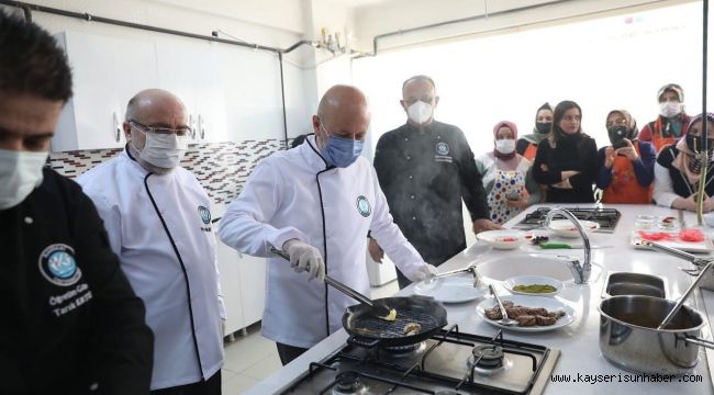 Kocasinan Belediyesi, Kayseri Üniversitesi işbirliğiyle akademisyenler tarafından kadınlara yönelik verilen 'Aşçılık Akademisi Eğitimleri' kursu devam ediyor. Kayseri Üniversitesi Rektörü Prof. Dr. Kurtuluş Karamustafa ile birlikte kursu ziyaret edip, aşçı önlüğünü giyerek, ocağın başına geçen Kocasinan Belediye Başkanı Ahmet Çolakbayrakdar, birbirinden lezzetli sunum tabağı çıkardı.