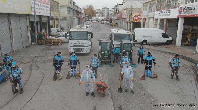 Çevreci belediyecilik anlayışı ile hareket eden Kocasinan Belediyesi'ne bağlı ekipler; cadde, sokak ve kaldırımların temizliğinin yanı sıra işyerlerinde de dezenfekte çalışması yaparak, vatandaşlara hijyenik bir ortam sunuyor.
