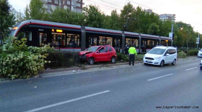 Kayseri'nin Kocasinan ilçesinde sürücüsünün direksiyon hakimiyetini kaybettiği otomobil tramvay yoluna uçtu.