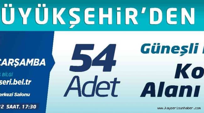 Mülkiyeti Kayseri Büyükşehir Belediyesi'ne ait olan Kocasinan İlçesi, Güneşli Mahallesi'nde bulunan 54 adet konut alanı arsası 'Açık Teklif Usulü' ihale ile satışa sunulacak. İhale, 1 Haziran Çarşamba günü saat 10.00'da, Büyükşehir Belediyesi Kadir Has Kongre Kültür ve Sanat Merkezi Salonu'nda gerçekleştirilecek.