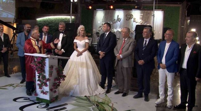 Kayseri Büyükşehir Belediye Başkanı Memduh Büyükkılıç ve MHP Kayseri Milletvekili Baki Ersoy genç çifte mutluluklar dilerken, çiftin evlilik cüzdanı da geline verildi.