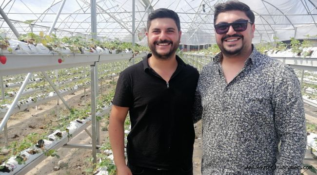 Kayseri'de Salih-Batuhan Korkmaz kardeşler, kafe açmayı planladıkları 3 bin metrekarelik alanda topraksız tarımı tercih ederek yılda 70 ton çilek üretmeyi hedefliyorlar.
