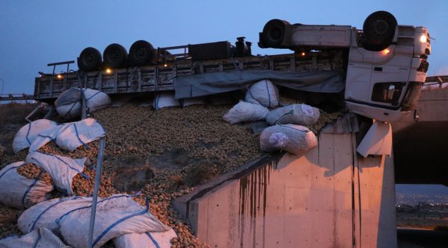 sürücü burnu bile kanamadan tırdan çıkarken, tırda yüklü olan patatesler etrafa