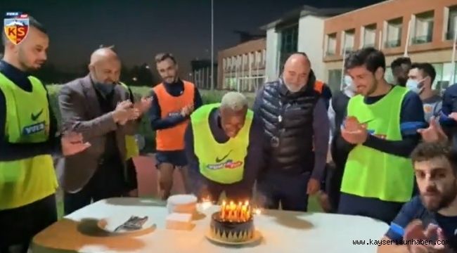 Yukatel Kayserispor'un Senegalli forvet oyuncusu Mame Baba Thiam'a takımı tarafından antrenman sonrası sürpriz doğum günü kutlaması yapıldı.