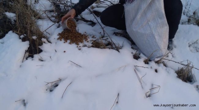 Kayseri'de Burhan Dinçbal Ortaokulunda matematik öğretmeni olan Selçuk Tütak, sosyal sorumluluk projesi kapsamında soğuk havalarda aç kalan sokak hayvanları için yem bıraktı.