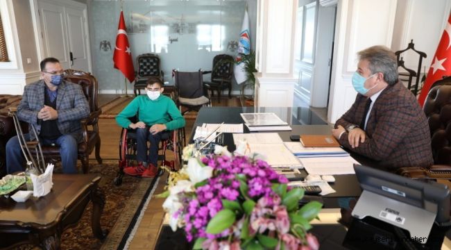 Melikgazi Belediye Başkanı Dr. Mustafa Palancıoğlu, Melikgazi Belediyesi Bedensel Engelliler Gençlik ve Spor Kulübü oyuncusu Ömer Çelik'e daha işlevsel bir tekerlekli sandalye hediye etti.
