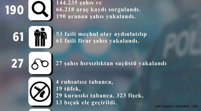 Melikgazi İlçe Emniyet Müdürlüğünce son bir ayda yapılan çalışmalarda 52 faili meçhul olay aydınlatılırken 61 faili firar şahıs ise yakalandı.