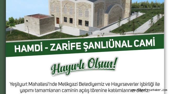 Melikgazi Belediyesi, Tınaztepe Mahallesi'nde Hayırsever Sarıalp ailesiyle birlikte yaptığı Ahmet-Selehattin Sarıalp Aile Sağlığı Merkezi ve Yeşilyurt'ta yine Melikgazi Belediyesi ve hayırsever işbirliği ile yapımı tamamlanan Hamdi-Zarife Şanlıünal Cami'nin 2 Temmuz Cuma günü açılışını yapacak.