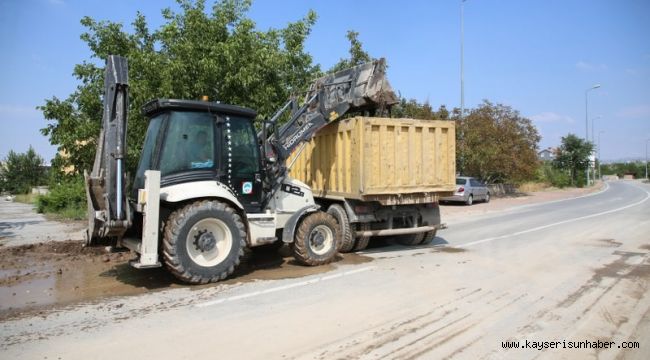 Melikgazi Belediyesi ilçede dün akşam saatlerinde etkili olan sağanak yağış sonrası yollarda oluşan hasarları onarırken, bir yandan da çamur olan noktaları yıkayıp temizliyor.