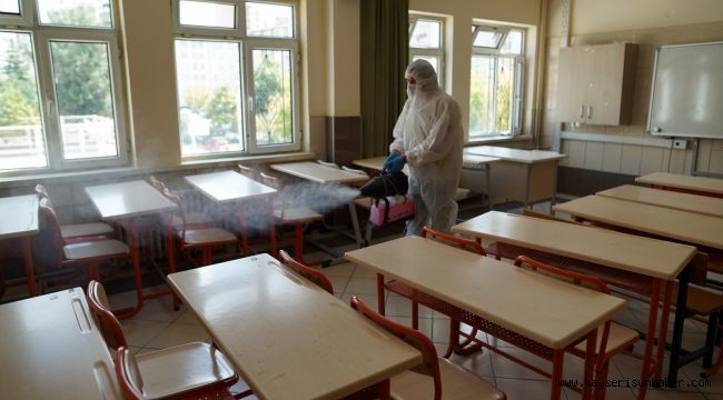 Melikgazi Belediyesi, 6 Eylül'de eğitim ve öğretim dönemine başlayacak okullarda zararlı haşerelere karşı ve korona önlemleri kapsamında ilaçlama çalışması yaptı.