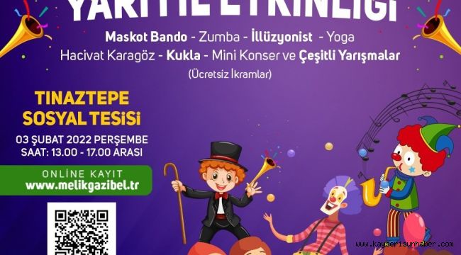 Etkinlikler hakkında bilgiler veren Palancıoğlu, "Etkinliklerimiz 3 Şubat Perşembe günü saat 13.00 ve 17.00 saatleri arasında Tınaztepe Sosyal Tesislerinde, 4 Şubat Cuma günü ise Necip Fazıl Kısakürek Sosyal Tesisimizde yine saat 13.00 ile 17.00 arasında olacak. Etkinliklere katılmak üzere www.melikgazi.bel.tr adresinden online kayıt yaptırabilirsiniz. Haydi çocuklar hepinizi bekliyorum dedi.
