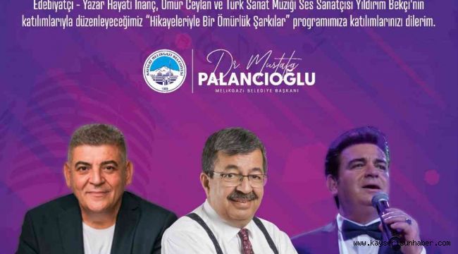 Etkinlik hakkında bilgi veren Başkan Dr. Palancıoğlu; "Melikgazi Belediyesi olarak hizmetlerimizi yapmaya devam ediyoruz. Bir taraftan da kültür sanat etkinliklerimizi vatandaşlarımızla buluşturmaya devam ediyoruz. 'Hikâyeleriyle Bir Ömürlük Şarkılar' programımızda Ben Gamlı Hazan, Sen Hep Beni Mazideki Halimle Tanırsın, Kimseye Etmem Şikayet, Ömrüm Seni Sevmekle Nihayet Bulacaktır, Gecenin Matemini Aşkıma Örtüp Sarayım, Geçti Sevdalarla Ömrüm şarkılarını hikayeleri ile beraber dinleyebilirsiniz. Şair-Yazar Prof. Dr. Ömür Ceylan her şarkının hikâyesini anlatacak, Edebiyatçı-Yazar Hayati İnanç şarkıların güftesini okuyacak, Türk Sanat Müziği Ses Sanatçısı Yıldırım Bekçi ise şarkıları seslendirecek. Şarkıların hikâyelerini öğrenmek yaşanmışlıkları öğrenmek oldukça ilginç olacak. 21 Mayıs Cumartesi günü saat 20.00'de Erciyes Üniversitesi Sabancı Kültür Merkezinde gerçekleştireceğimiz programa tüm hemşehrilerimizi bekleriz. Melikgazi Belediyesi olarak sosyal ve kültürel etkinliklerimiz hızla devam edecek."