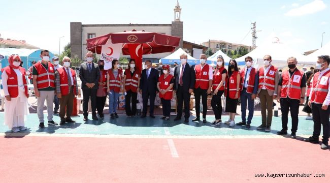 Ali Dağı Yamaç Paraşüt Pistinde düzenlenen yardım panayırına Büyükşehir Belediye Başkanı Memduh Büyükkılıç, Melikgazi Kaymakamı Bülent Karacan da katıldı. 700 kişilik yemek ve içecek desteği ile hayır panayırına katkıda bulunduklarını söyleyen Başkan Dr. Palancıoğlu, "Filistinli evlatlarımız yararına Türk Kızılayı Kocasinan, Melikgazi ve Talas Şubeleri Kadın Kolları bu güzel hayır panayırını düzenledi. Hazırlamış olduğu yiyecekleri satışa sunuyor. Bizde Melikgazi Belediyesi olarak hayır panayırına 700 kişilik yemek ve su ile destek olduk. Kızılay Türkiye'nin değil dünyanın en önemli yardım kuruluşlarından biri. Soysal belediyecilik çalışmalarımız kapsamında yardım için olan tüm çalışmalara elimizden geldiğince destek oluyoruz. Hayır panayırından elde edilen gelirler ise Filistin'deki yetimler için kullanacak. Filistin'de saldırılar sonrası birçok çocuk yetim ve öksüz kaldı. Bu anlamlı yardım kampanyası için hayır panayırına katılarak destek olan vatandaşlarımıza, Türk Kızılayı yöneticilerimize ve yönetim kurulu üyelerine, gösterdikleri hassasiyet için teşekkür ediyorum. 17 ve 19 Haziran'da açık olan bu yardım panayırına destek olmak isteyen vatandaşlarımızı bekliyoruz" dedi.