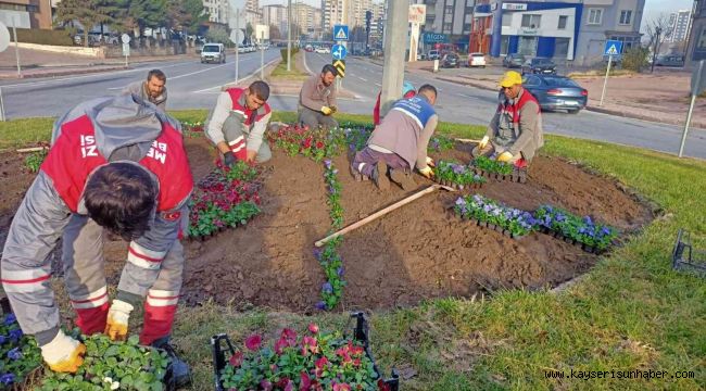 Melikgazi Belediyesi sonbahar da başlayan kavşak çiçeklendirme çalışmalarına başlayarak kış mevsimi için mevsime özel rengarenk çiçeklerle kavşakları süsledi.