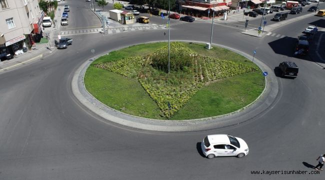 Melikgazi'nin kavşakları yeşillendi
