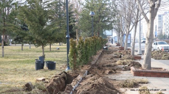 Melikgazi'nin parklarına ağaç ve süs bitkisi dikimi başladı