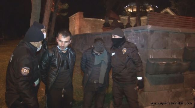Kayseri'nin Melikgazi ilçesinde mezarlıkta pompalı tüfeklerle havaya ateş açan şahıslar polis ekiplerini harekete geçirdi. Mezarlığın içerisinde tüfeklerle birlikte yakalanan 2 şahsın yan yana gelince gülmeleri dikkat çekti.
