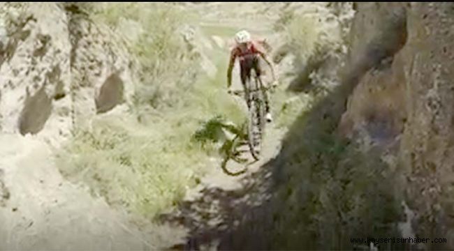 Milli bisikletçi Furkan Akçam, Kayseri'nin ünlü Koramaz Vadis'inin tanıtımı için pedal çevirdi.