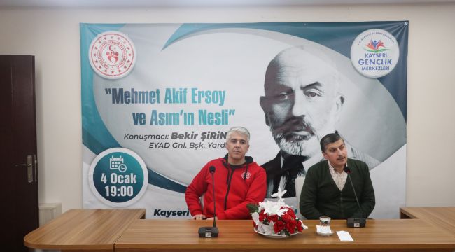 Gençlik ve Spor İl Müdürlüğü Erciyes Kamp ve Eğitim Merkezi’nde düzenlenen’Hakkın Sesi Mehmet Akif Ersoy’ Programı, saygı duruşunda bulunulması ve İstiklal Marşı’nın okunması ile başladı. Milli mücadelenin amacını, ruhunu, milletin bağımsızlık ve beraberlik azmini dile getiren İstiklal Marşı’nın kabul edildiği 12 Mart ve 20-27 Aralık Mehmet Akif Ersoy'u Anma Haftası dolayısıyla düzenlenen programa, Milli Eğitim Bakanlığı Daire Başkanı Bekir Şirin konuşmacı olarak katıldı.